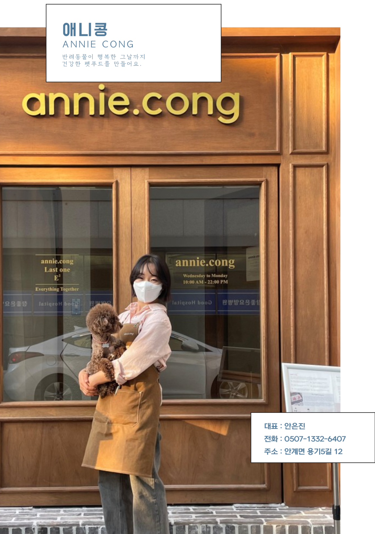 지역 농산물을 이용해서 펫푸드를 만드는 애니콩을 운영 중인 안은진입니다. 이제 애니콩을 창업한지 4년차에 접어들었어요. 애니콩은 의성지역에서 나는 쌀, 단호박, 가지, 당근 같은 농산물들을 사용해서 펫 베이커리 제품을 생산하고 있습니다.