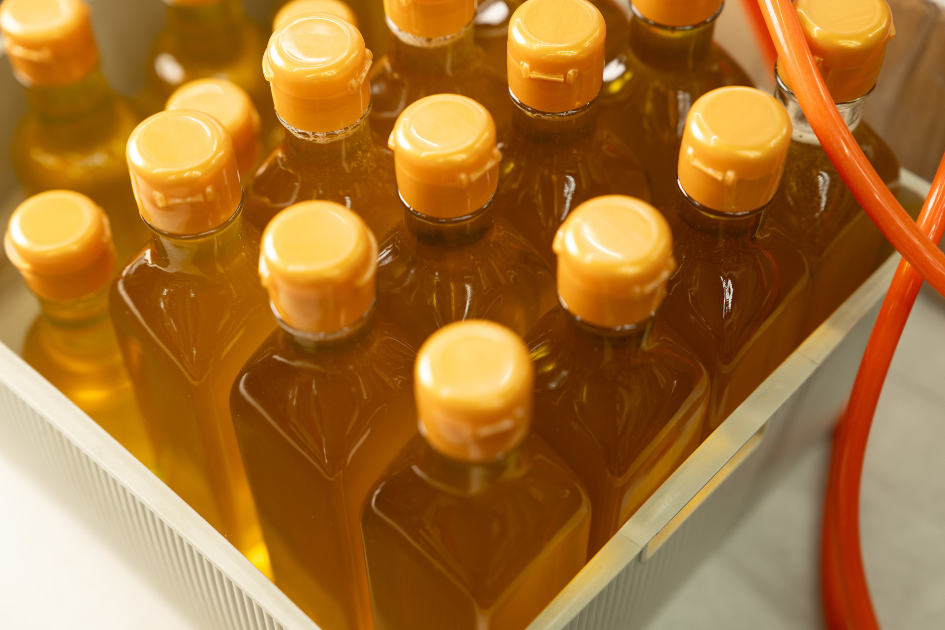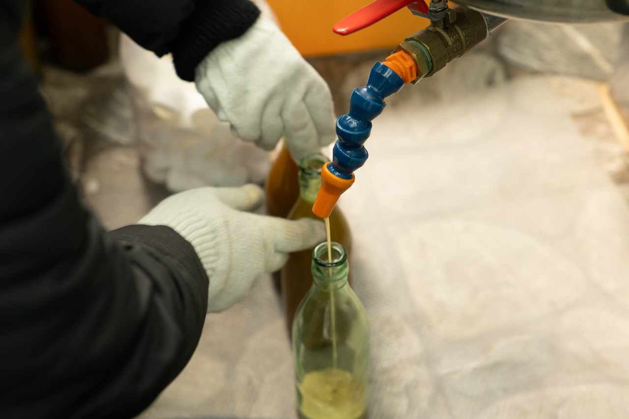 저희 읍내방앗간이 제일 자신있는 것은 위생과 청결이예요. 무료로 제공하는 병도 있고 판매용으로 제공되는 병도 있는데, 이 병들을 늘 소독해서 갓짠 기름을 넣어드리고 있어요.