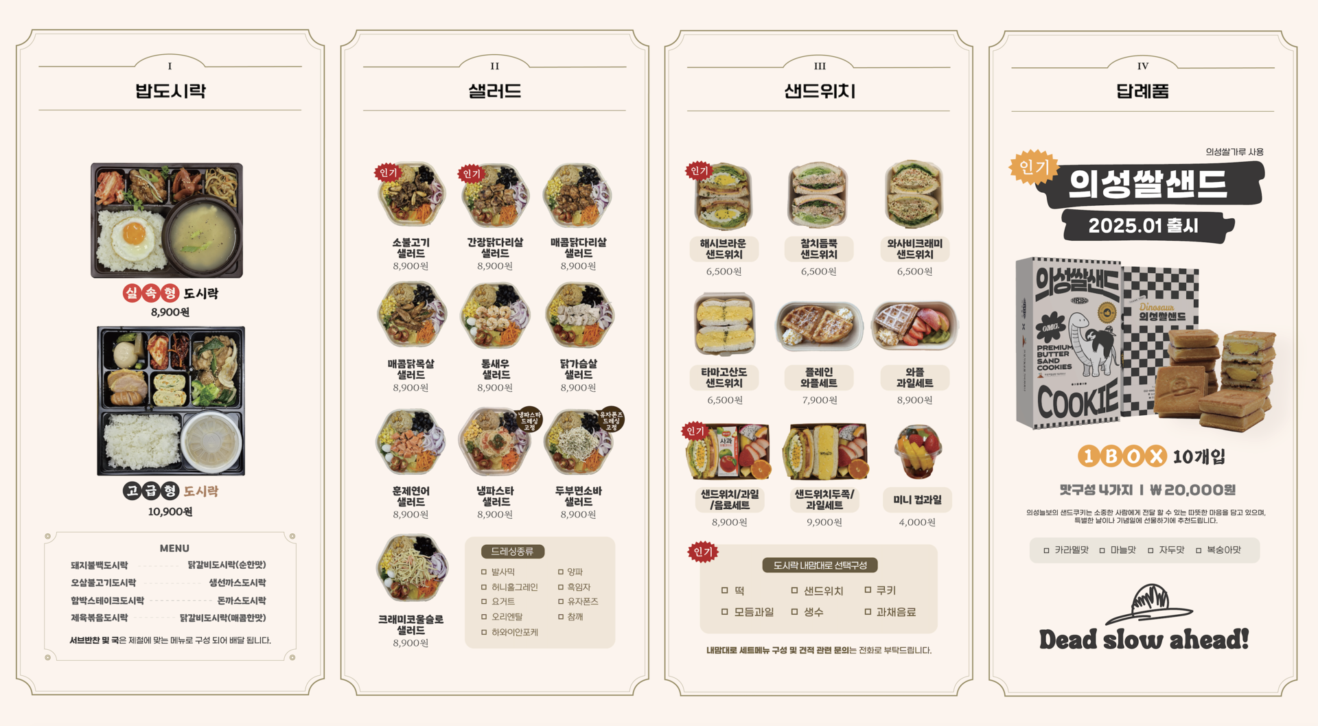 의성늘보의 도시락 및 케이터링 메뉴